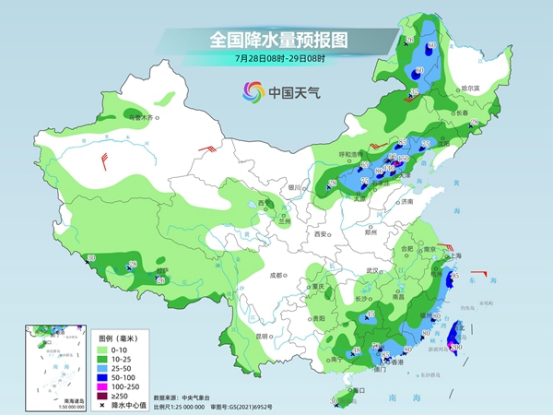 未來(lái)三天(7月28日至30日),華東地區(qū)降雨頻繁,浙江、江蘇、上海等地雨勢(shì)猛烈,華北、東北一帶依然降雨連連,雨勢(shì)逐漸減弱。在降水較少波及到的黃淮、江漢、華南以及陜西關(guān)中、四川盆地等地,本周高溫悶熱天氣持續(xù),不少地方還將晝夜連軸熱。