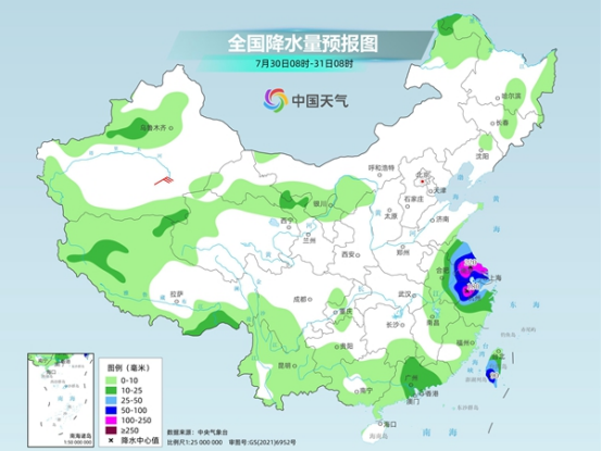后天,江蘇中南部、上海、安徽東部、浙江北部等地有大到暴雨,部分地區(qū)有大暴雨,臺(tái)灣島中南部有大到暴雨。