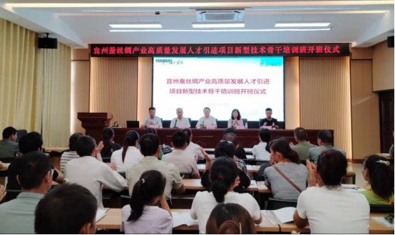 7月25日,宜州蠶絲綢產(chǎn)業(yè)高質(zhì)量發(fā)展人才引進(jìn)項目新型技術(shù)骨干培訓(xùn)班在河池學(xué)院格致樓102會議室開班。宜州區(qū)科學(xué)技術(shù)局副局長韋孟威,河池學(xué)院化學(xué)與生物工程學(xué)院院長、廣西桑蠶生態(tài)學(xué)與智能化技術(shù)應(yīng)用重點實驗室主任李曉東教授,以及來自德勝、洛東、洛西、石別和安馬等鄉(xiāng)鎮(zhèn)50余名桑蠶技術(shù)骨干參加開班儀式。開班儀式由河池學(xué)院化學(xué)與生物工程學(xué)院覃玥教授主持。