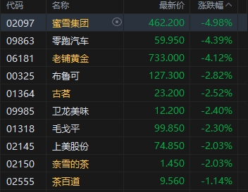新消費概念繼續(xù)回調(diào),老鋪黃金跌超4%。老鋪黃金上半年凈利預增近300%,高盛發(fā)布研報稱,盡管老鋪黃金增長迅猛,但公司上半年實際收入預期仍略低于其預估,主要因新店擴張時間有所延遲(部分5-6月新開門店貢獻將滯后至下半年體現(xiàn))。同時,其經(jīng)調(diào)整利潤也略低于預期,主要源于股份支付相關(guān)的調(diào)整差異。
