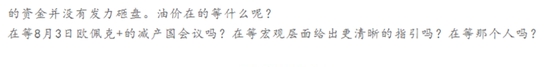 歐佩克+聯(lián)合部長級監(jiān)督委員會(JMMC)會議進(jìn)行了10分鐘后就快速結(jié)束,會議重申完全遵守配額的重要性,將于10月1日舉行下一次JMMC會議,對于9月份的增產(chǎn)決定按計劃將在8月3日由歐佩克+的8個減產(chǎn)國做決定。本周地緣、美聯(lián)儲議息會議及歐佩克+增產(chǎn)將輪番登場,這意味著本周原油市場將維持大波動。