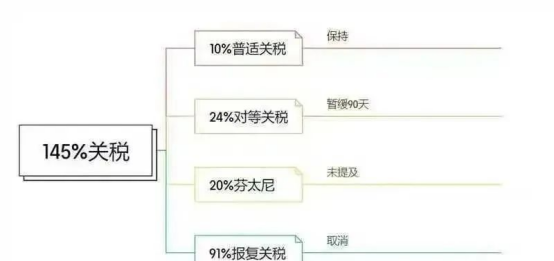【美原計(jì)劃追加的24%關(guān)稅(疊加后總稅率34%)再次被擱置?!?/span>