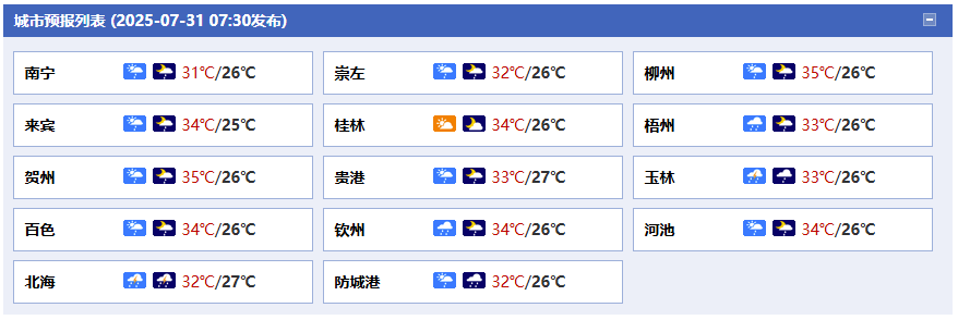 廣西氣象臺(tái)31日05時(shí)發(fā)布預(yù)報(bào):