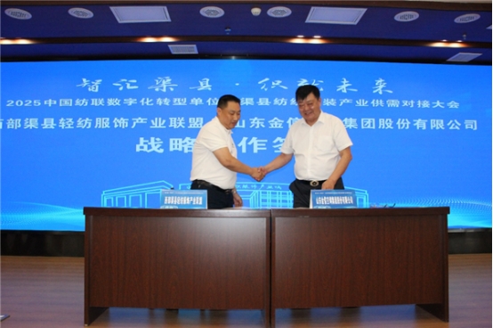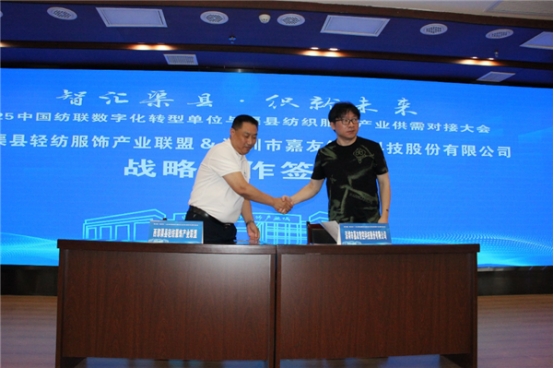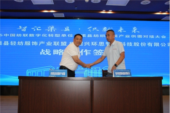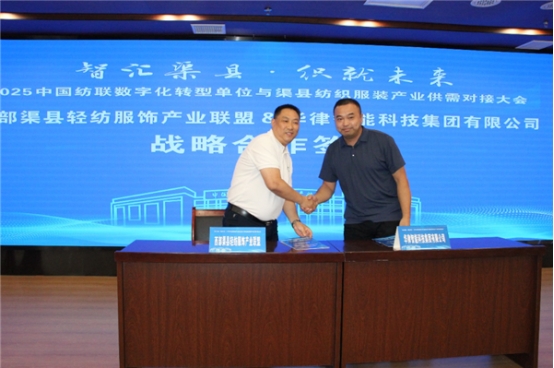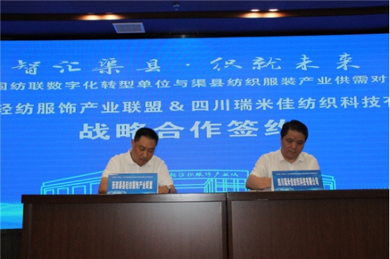 中國紡聯(lián)數(shù)字化轉型單位6家優(yōu)質企業(yè)與西部渠縣輕紡服飾產(chǎn)業(yè)聯(lián)盟簽訂了戰(zhàn)略合作協(xié)議,就服裝研發(fā)設計產(chǎn)品應用推廣、提升產(chǎn)業(yè)智能化水平、天然纖維面料的創(chuàng)新研發(fā)與生產(chǎn)、加強品牌建設、培育產(chǎn)業(yè)集群、推動產(chǎn)業(yè)數(shù)字化轉型等方面開展協(xié)同合作。