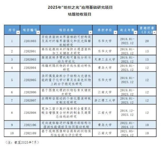 2025年3月-7月,中國(guó)紡織工業(yè)聯(lián)合會(huì)(以下簡(jiǎn)稱“中國(guó)紡聯(lián)”)陸續(xù)組織專家,對(duì)10項(xiàng)“紡織之光”中國(guó)紡聯(lián)應(yīng)用基礎(chǔ)研究項(xiàng)目分批進(jìn)行結(jié)題驗(yàn)收。這些項(xiàng)目覆蓋纖維材料改性、染料研發(fā)、功能織物設(shè)計(jì)、智能檢測(cè)、裝備優(yōu)化等多個(gè)紡織關(guān)鍵領(lǐng)域。驗(yàn)收委員會(huì)聽(tīng)取了項(xiàng)目承擔(dān)單位的匯報(bào),審閱了相關(guān)資料,經(jīng)質(zhì)詢和討論,認(rèn)為10個(gè)項(xiàng)目均完成了任務(wù)書規(guī)定的要求,同意通過(guò)結(jié)題驗(yàn)收。