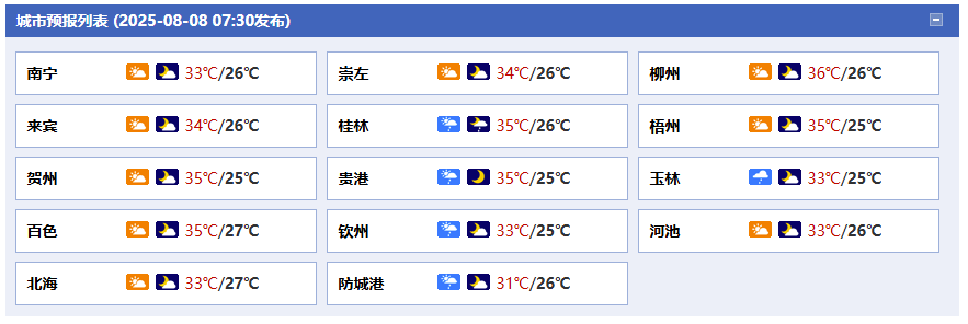 廣西氣象臺(tái)8日05時(shí)發(fā)布預(yù)報(bào):