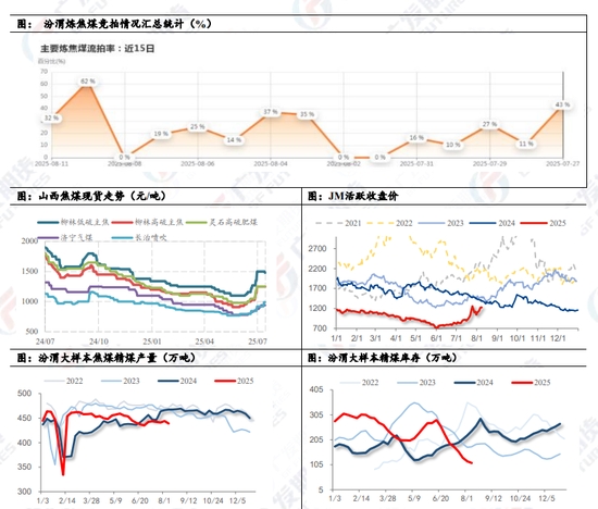 截至8月12日下午收盤,焦煤(1556, -15.00, -0.95%)期貨主力合約JM2501強勢上漲,漲幅6.97%(+85.5)至1313.0,近月合約JM2509封漲停,漲幅7.99%(+86.0)至1162.5,其他非主力合約均出現(xiàn)大漲走勢。盤面大漲主要由于以下幾個方面原因:
