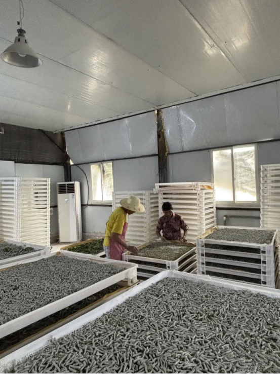 蓬安的蠶桑產(chǎn)業(yè)有著深厚的基礎(chǔ),但傳統(tǒng)養(yǎng)蠶方式暴露出的產(chǎn)值低、效益不高問題也一直存在。自2022年起,蓬安開始嘗試引入僵蠶養(yǎng)殖,開啟了新型養(yǎng)殖模式。三年多來,當(dāng)?shù)亟┬Q產(chǎn)業(yè)帶動(dòng)村閑散勞動(dòng)力就業(yè)近百人,村民年收入在4萬元左右。