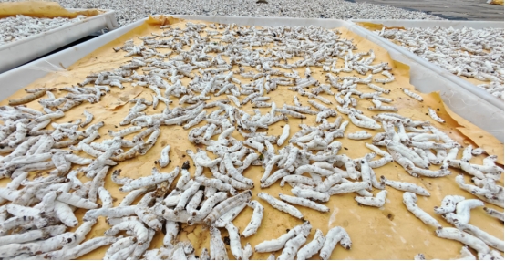 如今,王德實(shí)的桑園全年養(yǎng)殖30多批僵蠶,每批50多張蠶種,每張穩(wěn)定產(chǎn)僵蠶18公斤。“去年,我們養(yǎng)了大約1100張蠶種,收獲的僵蠶產(chǎn)量約20噸,產(chǎn)值超300萬元?!蓖醯聦?shí)說,當(dāng)前白僵蠶在國內(nèi)市場供不應(yīng)求,疊加蠶桑副產(chǎn)品綜合利用收益,他的桑園全年總產(chǎn)值能突破500萬元。