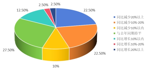 企業(yè)產(chǎn)能利用率略有不足。根據(jù)協(xié)會調(diào)查問卷結(jié)果顯示,上半年40%的企業(yè)產(chǎn)能利用率在50%~80%,47.5%的企業(yè)產(chǎn)能利用率在80%以上;52.5%的企業(yè)產(chǎn)能利用率較去年降低,42.5%的企業(yè)產(chǎn)能利用率與去年持平。據(jù)了解,影響企業(yè)開機率的主要因素在于訂單不足。