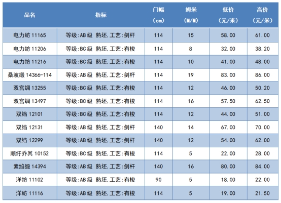 本周綢緞指數(shù)協(xié)作單位成交價格區(qū)間