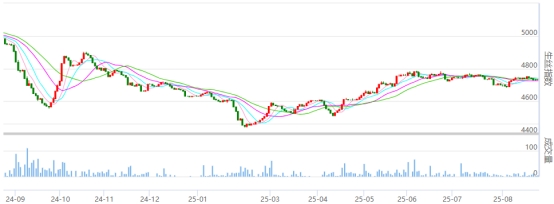 今日(周一)盤面各遠(yuǎn)近合約價(jià)格繼續(xù)小幅波動(dòng)。今日是250825生絲合約的最后交易日,終盤收于47.07萬元,增倉量繼續(xù)小幅增加,即將進(jìn)入實(shí)物交收環(huán)節(jié)。