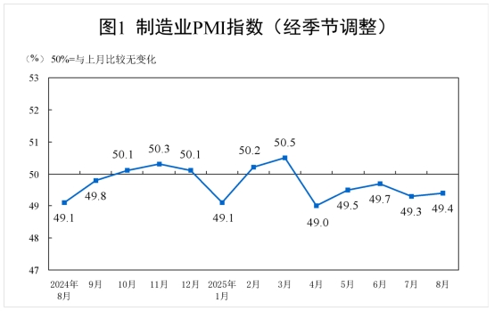 8月份,制造業(yè)采購經(jīng)理指數(shù)(PMI)為49.4%,比上月上升0.1個百分點,制造業(yè)景氣水平有所改善。