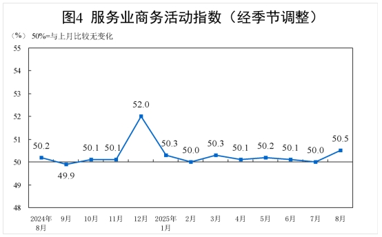 8月份,非制造業(yè)商務(wù)活動指數(shù)為50.3%,比上月上升0.2個百分點,高于臨界點,非制造業(yè)繼續(xù)保持擴張。
