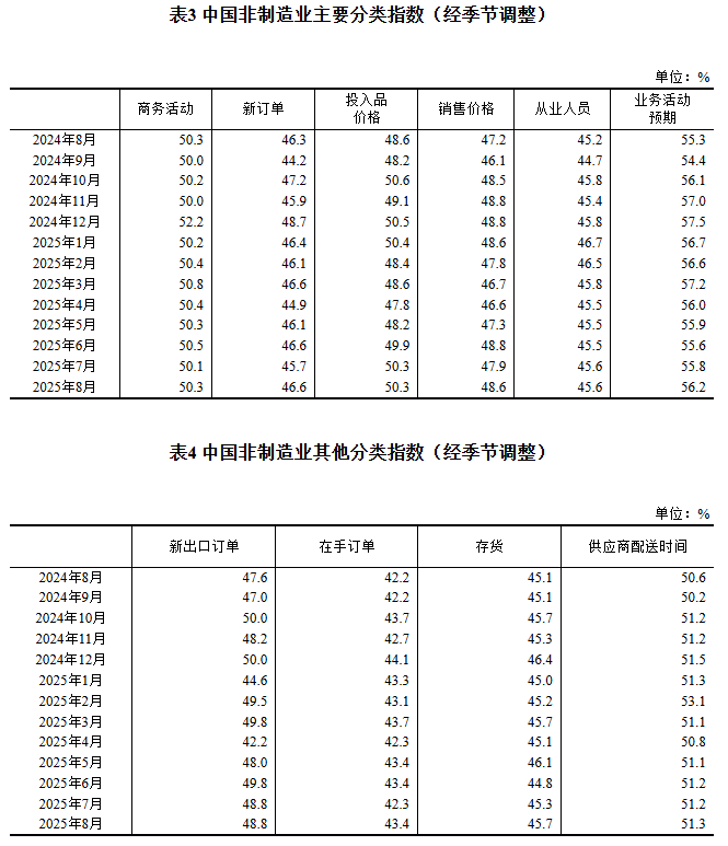 供應(yīng)商配送時間指數(shù)為50.5%,比上月上升0.2個百分點,表明制造業(yè)原材料供應(yīng)商交貨時間持續(xù)加快。