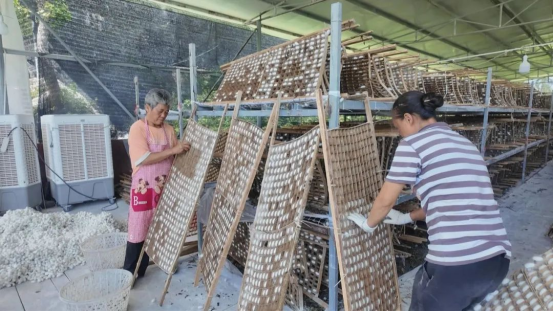 據(jù)介紹,這段時間,除了采摘蠶繭,正秋第二批小蠶也進(jìn)入了快速生長期。為保障秋蠶飼養(yǎng),當(dāng)?shù)剡€組織鎮(zhèn)村干部和蠶桑技術(shù)員深入蠶農(nóng)家中開展技術(shù)指導(dǎo),多措并舉為蠶繭豐收打好基礎(chǔ)。