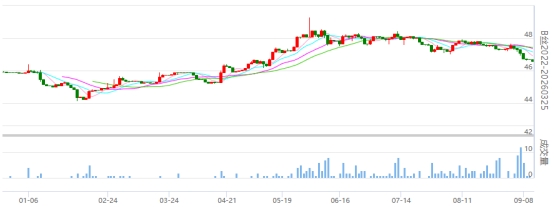 今日(周四)盤面各遠近生絲合約價格繼續(xù)有所收跌,250925生絲合約今日收平,持倉量繼續(xù)有所降低。