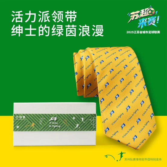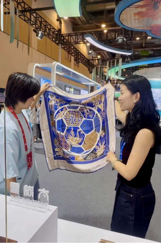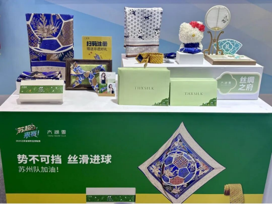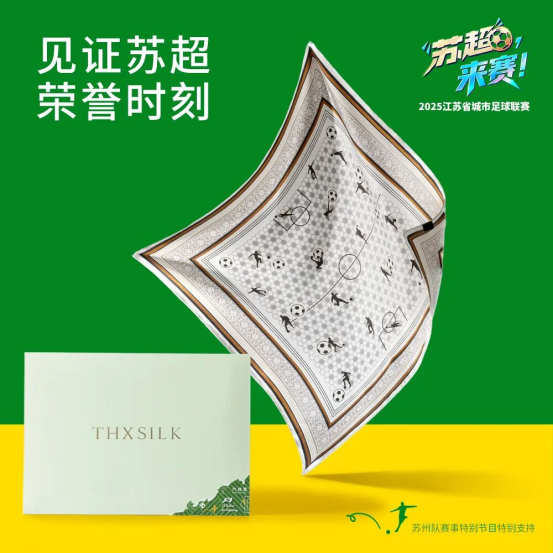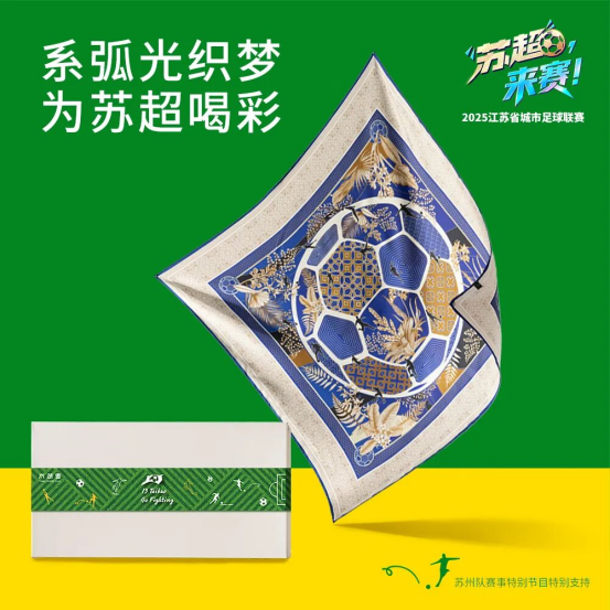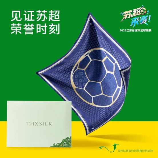 作為蘇州絲綢文化的代表性品牌,太湖雪此次帶來(lái)了以“體育精神+在地文化”為主題設(shè)計(jì)的蘇超“13太?!闭娼z限定禮盒,一經(jīng)亮相便迅速吸引眾多目光,成為展區(qū)當(dāng)之無(wú)愧的“人氣王”。該系列產(chǎn)品涵蓋絲巾、眼罩、領(lǐng)帶等多款品類,將江蘇十三座城市以幾何色塊巧妙融于足球圖案之中,并綴以江南四季花卉,既現(xiàn)代時(shí)尚,又富含文化底蘊(yùn)。