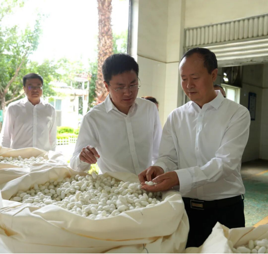 9月9日,州政府副州長李佳林一行深入繭絲綢工業(yè)園區(qū)詳細(xì)了解蠶繭產(chǎn)量產(chǎn)值、桑蠶絲產(chǎn)品開發(fā)利用、市場拓展、科技創(chuàng)新等情況。