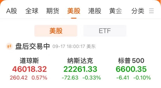 美東時(shí)間周三(9月17日),美股三大指數(shù)收盤(pán)漲跌不一,截至收盤(pán),道指漲0.57%,納指跌0.33%,標(biāo)普500指數(shù)跌0.1%。