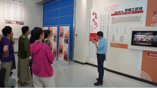 我的青春與絲線一同閃光——致敬絲綢產(chǎn)業(yè)奠基人。產(chǎn)業(yè)園區(qū)的絲綢勞模墻展示了14位絲綢勞模的卓越風(fēng)采,其中多位正是本次活動(dòng)的參觀者。他們曾在各自的崗位上兢兢業(yè)業(yè),為湖州絲綢產(chǎn)業(yè)的發(fā)展做出了不可磨滅的貢獻(xiàn)。勞模們的事跡和精神,深深感染了在場的每一個(gè)人。