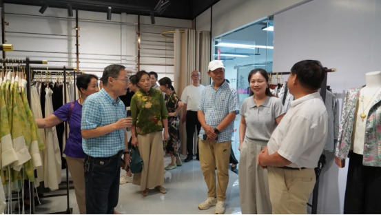 勞模們首先參觀了產(chǎn)業(yè)園的文化展示空間,深入了解了湖州絲綢產(chǎn)業(yè)的發(fā)展歷程和輝煌成就。在多家絲綢服裝商戶的“前店后坊”中,他們親眼目睹了傳統(tǒng)工藝與現(xiàn)代設(shè)計(jì)的完美融合,感受到了絲綢產(chǎn)業(yè)的創(chuàng)新活力。