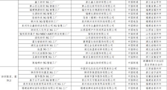 其中,悅達棉紡5G工廠、愉悅家紡基于5G+MEC+AIOT的全連接工廠、三六一度5G+智慧工廠、桐昆5G工廠等37個紡織、服裝和化纖企業(yè)項目上榜。
