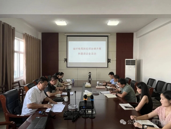9月17日,全國首個科普宣傳月期間,安徽省纖維檢驗局聯(lián)合安徽理工大學、安徽職業(yè)技術(shù)大學技術(shù)專家,走進安徽宏祥絲綢織造有限公司開展專題科普宣貫。