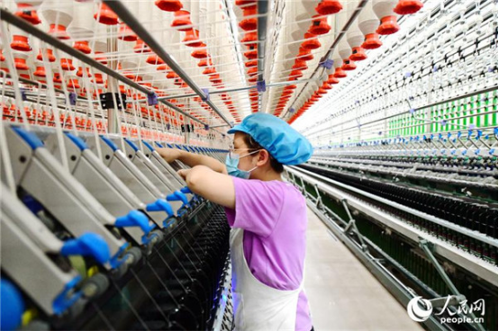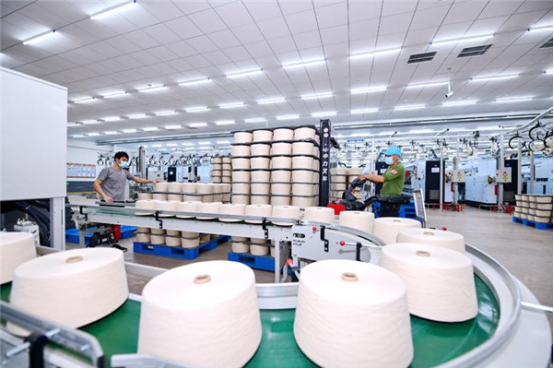 2025年9月17日,位于江西省贛州市于都縣的江西衛(wèi)棉紡織集團(tuán)有限公司“5G+”智能工廠生產(chǎn)車間里,工人忙著加工棉紡產(chǎn)品