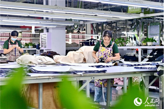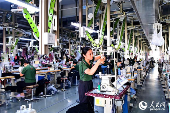 9月17日,工人在贏家時(shí)裝(贛州)有限公司生產(chǎn)車間加工女裝訂單產(chǎn)品