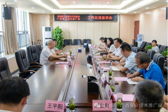 隨后,深圳市工業(yè)設(shè)計(jì)行業(yè)協(xié)會(huì)副會(huì)長馮曉及相關(guān)業(yè)務(wù)骨干與廣西蠶業(yè)技術(shù)推廣站領(lǐng)導(dǎo)班子及相關(guān)部門負(fù)責(zé)人開展座談。雙方圍繞蠶桑產(chǎn)業(yè)升級(jí)需求、工業(yè)設(shè)計(jì)賦能方向等展開深入探討。廣西蠶業(yè)技術(shù)推廣站介紹了當(dāng)前廣西蠶桑生產(chǎn)的總體規(guī)模、技術(shù)應(yīng)用現(xiàn)狀及發(fā)展瓶頸,交流團(tuán)結(jié)合工業(yè)設(shè)計(jì)領(lǐng)域優(yōu)勢(shì),從技術(shù)轉(zhuǎn)化、品牌打造、產(chǎn)業(yè)模式等維度提出了合作設(shè)想,雙方一致表示將建立常態(tài)化對(duì)接機(jī)制,推動(dòng)具體合作項(xiàng)目落地。
