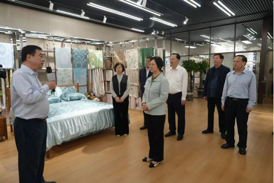 中國絲綢協(xié)會(huì)副會(huì)長(zhǎng)、集團(tuán)公司黨委書記、董事長(zhǎng)陳魯,總經(jīng)理張曉光對(duì)調(diào)研組一行的到來表示熱烈歡迎。陳魯董事長(zhǎng)帶領(lǐng)調(diào)研組一行參觀了企業(yè)產(chǎn)品展示廳,詳細(xì)介紹了企業(yè)近年來在生產(chǎn)經(jīng)營、技術(shù)創(chuàng)新、市場(chǎng)開拓等方面的情況,重點(diǎn)介紹了企業(yè)在文旅融合發(fā)展方面的創(chuàng)新實(shí)踐。