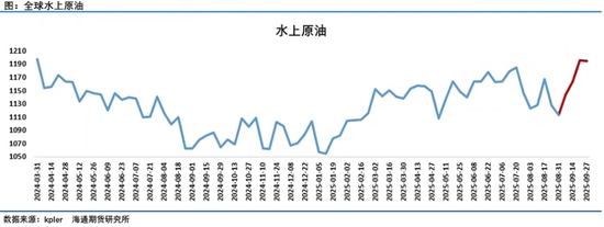 中東原油基準(zhǔn)的現(xiàn)貨溢價持續(xù)下跌,迪拜、穆爾班和阿曼原油價格均跌至數(shù)周新低,隨著歐佩克+的增產(chǎn)持續(xù)推進(jìn),反映出市場對供應(yīng)過剩的擔(dān)憂正在加劇。而油輪運費9月以來大幅拉升成為一個熱點,雖然本周根據(jù)上海航運所數(shù)據(jù)顯示運費略有回落,但仍處于近年來絕對高位,根據(jù) Clarksons 的最新數(shù)據(jù),VLCC現(xiàn)貨加權(quán)平均水平在9月中旬升至103,200 美元/天,個別航次甚至突破15萬美元/天。這一場景揭示了大量的原油正投放到市場中來。從航次數(shù)據(jù)來看,中東(MEG)9 月放貨量超過165單,較上月顯著增加,10 月預(yù)計更高,美灣–遠(yuǎn)東航線也保持活躍,候選船極為有限,這種現(xiàn)象的背后是水上正有龐大的原油在運輸途中。所以最近二周時間原油市場看似庫存數(shù)據(jù)并沒有給油價帶來壓力,但可能這是大幅累庫之前的短暫平靜期,就像臺風(fēng)眼中的平靜。這個(累庫)壓力可能要在后續(xù)的時間體現(xiàn)到市場中。根據(jù)Kpler的高頻數(shù)據(jù)跟蹤9月份全球范圍為包括浮動倉儲及運輸中的原油較8月底增長了8000萬桶,這部分原油增量到達(dá)目的地之后預(yù)計石油市場將呈現(xiàn)非常明顯的庫存累計。