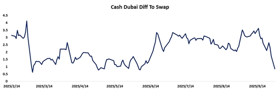 ⑷現(xiàn)迪拜對互換的溢價在9月迄今每月上漲52美分/桶,與預(yù)測一致。