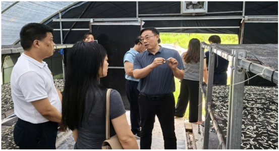 活動重點調(diào)研了金橋鎮(zhèn)三臺村僵蠶養(yǎng)殖基地,針對基地在桑園秋季病蟲害防治、肥水管理和僵蠶飼養(yǎng)過程中的消毒防病等技術(shù)難點,我院專家團隊進行了精準指導和現(xiàn)場示范,并贈送蠶科院《養(yǎng)蠶實用技術(shù)》手冊,幫助基地技術(shù)人員更熟練掌握蠶桑種養(yǎng)殖技術(shù)要點。各黨支部同志就僵蠶養(yǎng)殖產(chǎn)業(yè)的創(chuàng)新發(fā)展、效益提升及蠶桑特色經(jīng)濟發(fā)展展開研討交流,并表示未來可加強產(chǎn)學研合作,進一步加大“桑園+”種養(yǎng)結(jié)合模式、僵蠶產(chǎn)業(yè)高值化加工技術(shù)研究、蠶沙綜合利用等方面的關(guān)鍵技術(shù)協(xié)同攻關(guān)。
