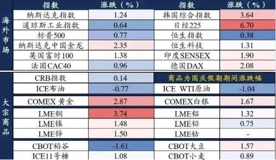 長(zhǎng)假期間,海外大事不斷,三個(gè)事件為重。一是美國(guó)政府關(guān)門(mén),二是日本自民黨總裁選舉落地,三是法國(guó)總理辭職。美國(guó)政府關(guān)門(mén)、法國(guó)總理辭職等事件,加劇市場(chǎng)不確定性,推升黃金、加密貨幣等資產(chǎn)的漲幅,金價(jià)連創(chuàng)新高,COMEX金一度破4000美元/盎司。日本新首相政策利空日元、日債,利多日股。