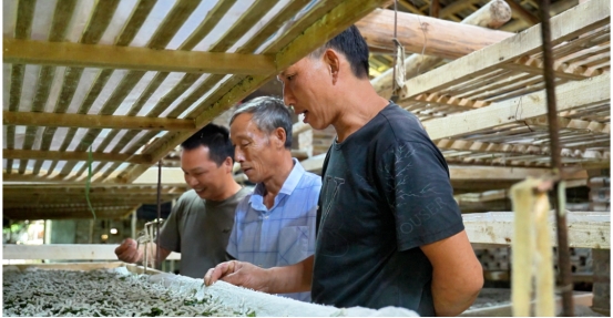 蠶桑產(chǎn)業(yè)不僅惠及本村,還吸引了周邊村莊的能人返鄉(xiāng)創(chuàng)業(yè)。來自底堡鄉(xiāng)水月村的村民雷天幡便看中蠶業(yè)發(fā)展前景,回鄉(xiāng)投身養(yǎng)殖,目前月收入已超過一萬元。