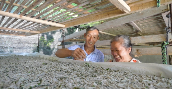 “因?yàn)轲B(yǎng)蠶時(shí)間短,掙錢快,上半年把莊稼種好了,下半年就養(yǎng)蠶,每個(gè)月20多天就把錢賺了?!蔽屣@村村民沈明山開心地說。