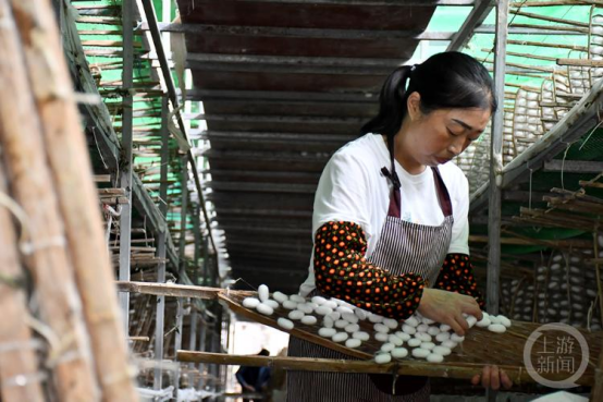在黔江區(qū)新華鄉(xiāng)中安村,養(yǎng)蠶戶正忙著采收桑蠶繭,新鮮的桑蠶繭很快就運(yùn)到了鄉(xiāng)里的收購站,經(jīng)過稱重、選繭、測量含水率之后,再依據(jù)質(zhì)量分級(jí)定價(jià)。