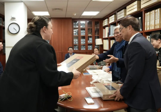 大系總主編趙豐教授向大都會(huì)藝術(shù)博物館出版編輯部贈(zèng)書(shū)