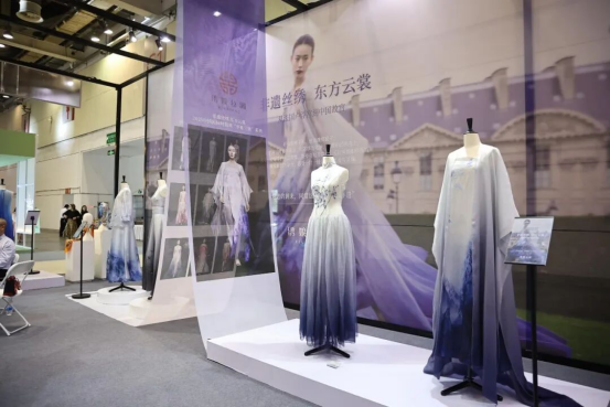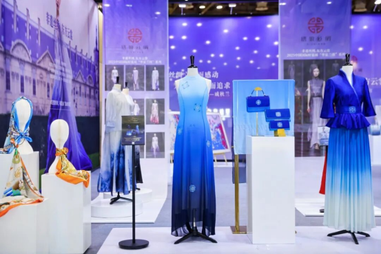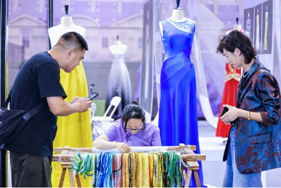 展會(huì)現(xiàn)場(chǎng),繡娘絲綢“皇家國(guó)韻”、“華夏蘭繡”等高定產(chǎn)品格外“吸睛”,這兩大高定系列曾相繼亮相盧浮宮與國(guó)際時(shí)裝周的舞臺(tái),不僅展示了中國(guó)品牌在文化自信基礎(chǔ)上的創(chuàng)新實(shí)力,也為絲綢產(chǎn)業(yè)的復(fù)興與國(guó)際化推進(jìn)提供了新范式。繡娘絲綢非遺創(chuàng)新傳承人戚秋蘭女士介紹說:“我們已收到巴黎、米蘭國(guó)際時(shí)尚平臺(tái)的合作邀約,預(yù)計(jì)將于明年啟動(dòng)海外巡展計(jì)劃,持續(xù)推動(dòng)中國(guó)絲綢文化走向全球。”
