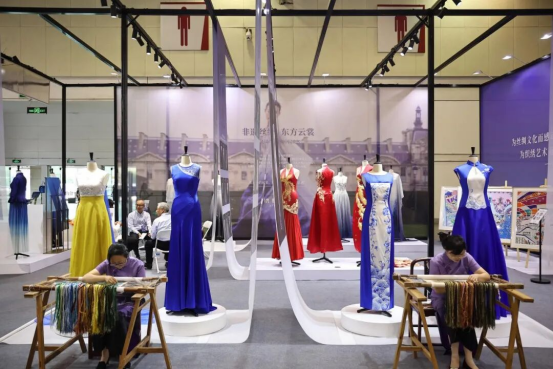 現(xiàn)場(chǎng),繡娘絲綢非遺蘇繡工藝精彩亮相,讓參展嘉賓近距離感受蘇繡的技藝與魅力。一針一線,一絲一繡,躍然指尖的不僅是傳承千年的技藝,更有中華民族優(yōu)秀的文化底蘊(yùn)。