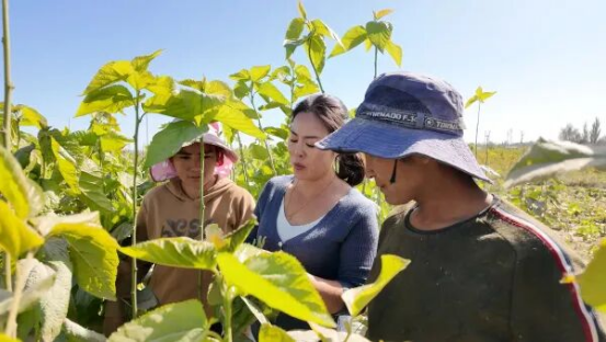 為進(jìn)一步擴(kuò)大產(chǎn)業(yè)輻射面,柏雅農(nóng)業(yè)創(chuàng)新推出“公司+農(nóng)戶”合作模式。公司不僅向奎牙鎮(zhèn)29個(gè)村200余畝地的100余戶種植戶傳授桑樹(shù)種植與管護(hù)技術(shù),還免費(fèi)提供桑樹(shù)苗,待種植戶采收桑葉后分期扣除種苗費(fèi)用,幫助他們降低種植成本,并在后期以每噸500元-700元的價(jià)格收購(gòu)桑樹(shù)條。這一模式讓種植戶吃下“定心丸”,奎牙鎮(zhèn)幸福村村民阿卜力克木·麥麥提便是受益者之一?!拔医衲?月在公司的技術(shù)幫扶下種了3畝桑樹(shù)苗,第一茬賣了2900元,第二茬賣了3100元,收成特別好!我已經(jīng)準(zhǔn)備好15畝地,明年接著種,肯定能賺更多錢?!卑⒉妨四镜脑捳Z(yǔ)里滿是豐收的喜悅。