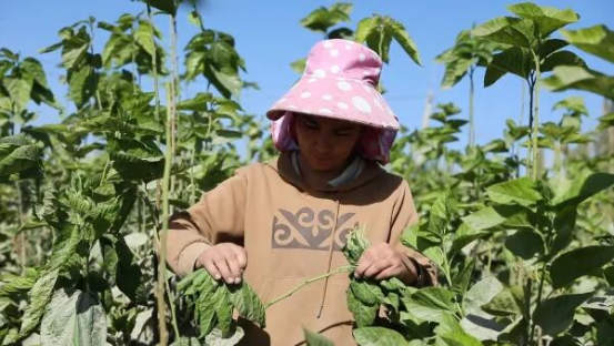 卜薩力馬·圖爾蓀托合提在采摘桑葉