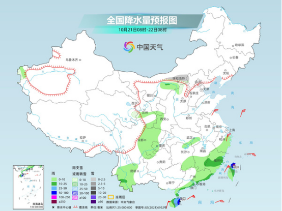 今明天,華西秋雨區(qū)降雨仍頻繁,不少地方隨著氣溫下降,雨雪相態(tài)將發(fā)生轉換,公眾外出需小心慢行,注意交通安全。臺風“風神”進入南海后將遭遇冷空氣,導致其路徑轉向偏南,登陸我國的可能性大大降低,且臺風強度也會受到冷空氣破壞,但冷空氣和臺風“風神”結合會給我國東部及南部海域帶來長時間的大風天氣,將持續(xù)到24日,相關海域作業(yè)平臺以及往來船舶要做好防御大風的準備。