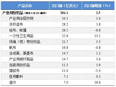 2025年1-8月產(chǎn)業(yè)用紡織品行業(yè)及主要產(chǎn)品出口情況