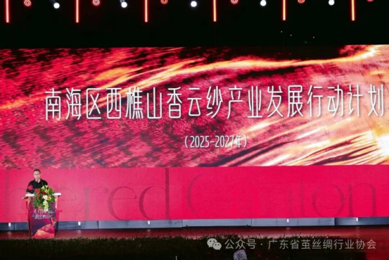 會上發(fā)布了《南海區(qū)西樵山香云紗產(chǎn)業(yè)發(fā)展行動計劃(2025-2027年)》,三年規(guī)劃立足南海千萬薯茛、千里河泥、千畝曬場獨(dú)特香云紗資源稟賦,構(gòu)建"3+3+3"產(chǎn)業(yè)發(fā)展工作體系,推動南海區(qū)力爭到2027年底,實現(xiàn)西樵山香云紗產(chǎn)業(yè)規(guī)模顯著提升,引育不少于25家品牌企業(yè),香云紗相關(guān)商品交易額不少于30億元,打造不少于5個產(chǎn)業(yè)特色園區(qū),形成具有行業(yè)影響力的香云紗產(chǎn)業(yè)集聚區(qū)。西樵山千畝野生薯莨保育基地啟用,全區(qū)統(tǒng)籌西樵、丹灶、九江3鎮(zhèn)資源,梳理出約2100畝曬莨地塊,到2027年可供曬莨土地面積達(dá)5000畝?!懊駱讽懺菩妗蔽穆庙椖繂?,以香云紗文化為主題打造沉浸式文旅綜合體的文化消費(fèi)新場景,多個簽約板塊,打通覆蓋香云紗發(fā)展全產(chǎn)業(yè)鏈,同時還發(fā)布了《西樵山香云紗起源藍(lán)皮書》,香云紗主理人工作室入駐,非遺傳播大使授牌,最后樵山聽云、萬象有衣、匠曼延、汝良等品牌聯(lián)合的時尚大秀,以西樵山自然景觀為背景,將大會推向最高潮。