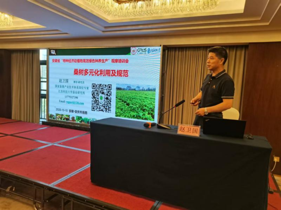 2025年10月10日,由安徽省農(nóng)業(yè)科學院蠶桑研究所舉辦的安徽省特種經(jīng)濟動植物高效綠色種養(yǎng)生產(chǎn)現(xiàn)場觀摩會在岳西成功舉行,國家蠶桑產(chǎn)業(yè)技術體系崗位科學家趙衛(wèi)國研究員、錢荷英教授、張業(yè)順教授受邀出席并作主旨報告。安徽省特色農(nóng)業(yè)產(chǎn)業(yè)技術體系首席、安徽省農(nóng)業(yè)科學院蠶桑所副所長汪泰初研究員主持本次會議。