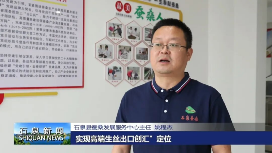 石泉縣蠶桑發(fā)展服務(wù)中心主任 姚程杰:下一步,我們將進(jìn)一步明確打造“6A級(jí)優(yōu)質(zhì)繭絲基地,實(shí)現(xiàn)高端生絲出口創(chuàng)匯”定位及實(shí)施蠶桑產(chǎn)業(yè)品牌戰(zhàn)略相關(guān)工作任務(wù),對(duì)縣域蠶桑龍頭企業(yè)等經(jīng)營主體開展“一對(duì)一”幫扶服務(wù),指導(dǎo)其加大產(chǎn)品開發(fā)和“三品一標(biāo)”認(rèn)證,擦亮鎏金銅蠶品牌。