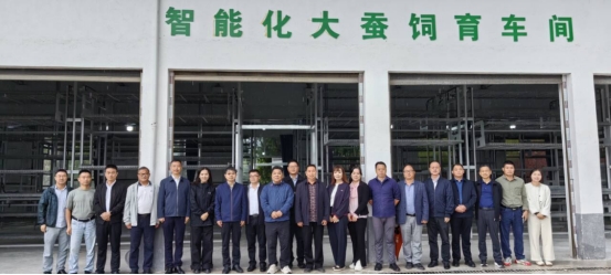 2025年10月21日代表團(tuán)一行乘車前往四川省南充市嘉陵區(qū)龍?bào)存?zhèn)四川順成現(xiàn)代農(nóng)業(yè)科技發(fā)展有限公司大蠶智能化養(yǎng)蠶車間,觀摩智能化養(yǎng)殖流程,詳細(xì)了解“龍頭企業(yè)+農(nóng)戶模式”運(yùn)營管理情況,順成集團(tuán)總經(jīng)理江邵剛陪同參觀,董事長趙燕輝、總經(jīng)理王尚雪參與交流。